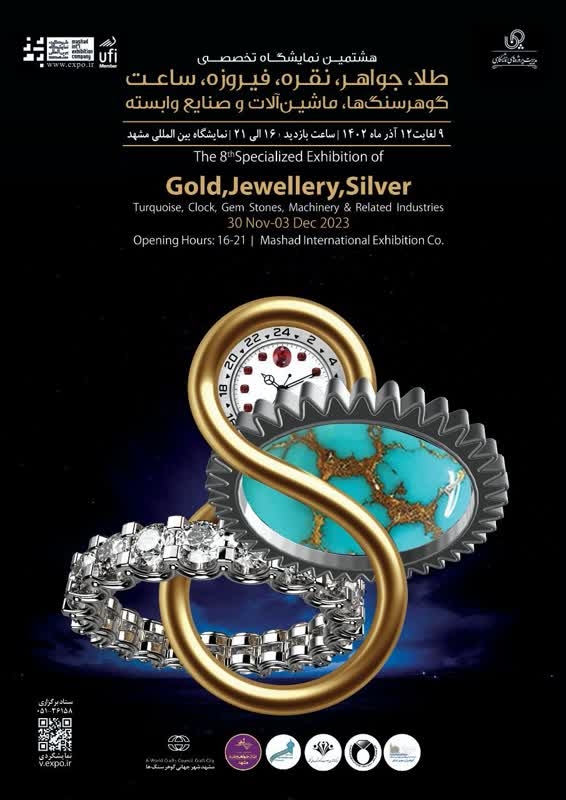 هشتمین نمایشگاه تخصصی فلزات گران بها، طلا، جواهر، نقره، ساعت، سنگ های قیمتی 1402/9/9-12