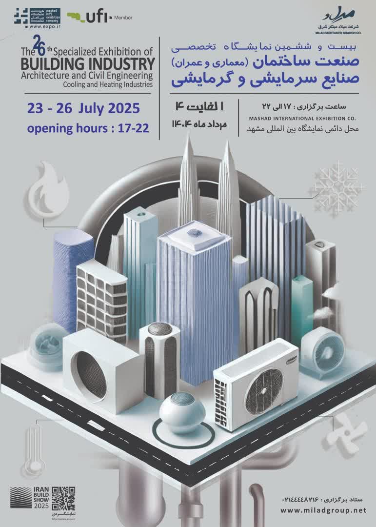 صفحه اصلی / رویدادها / نمایشگاه داخلی / بیست و ششمین نمایشگاه تخصصی ساختمان تاسیسات (معماری و عمران) صنایع گرمایشی و سرمایشی (نیمه اول) (1 تا 4 مردادماه 1404)